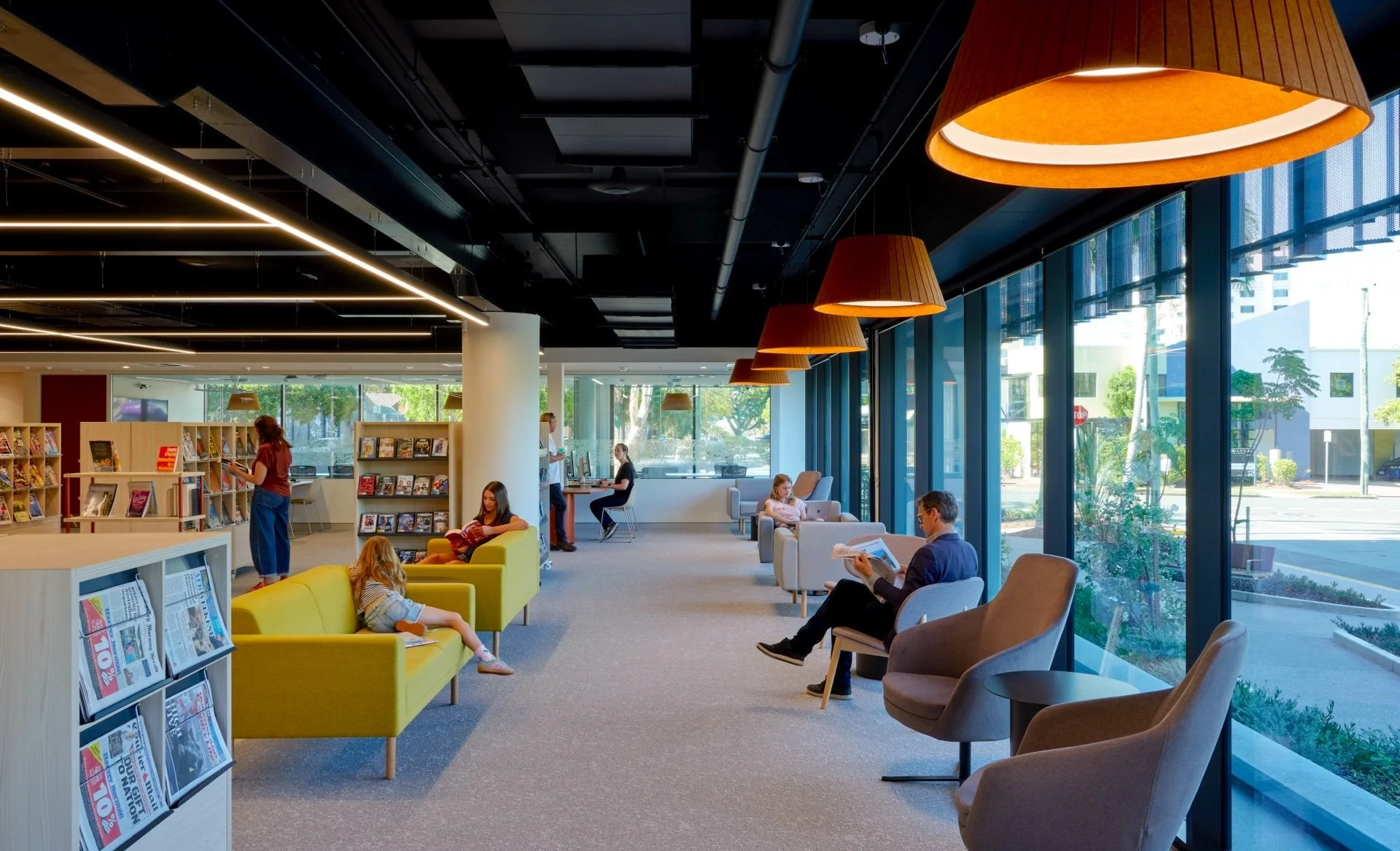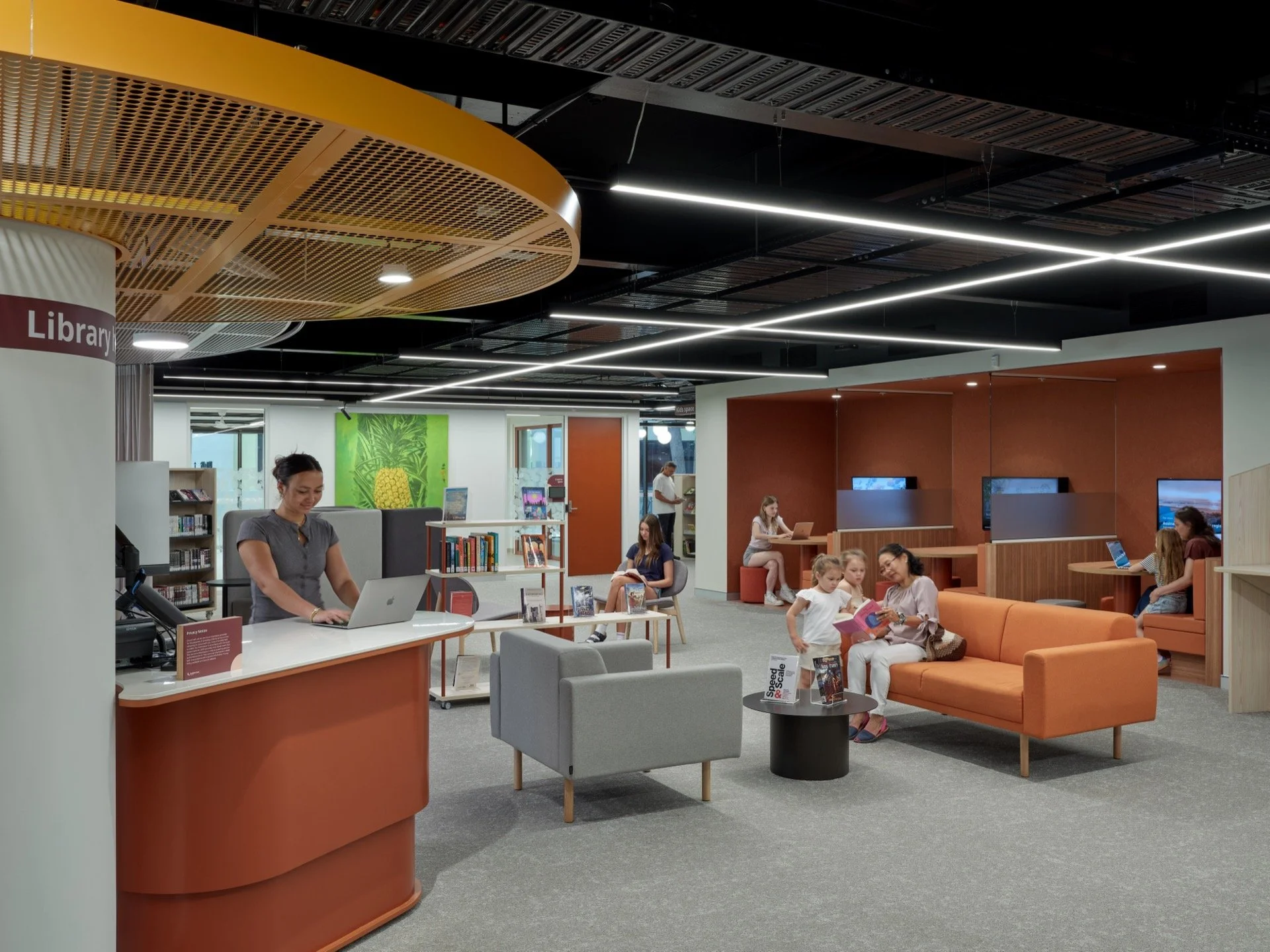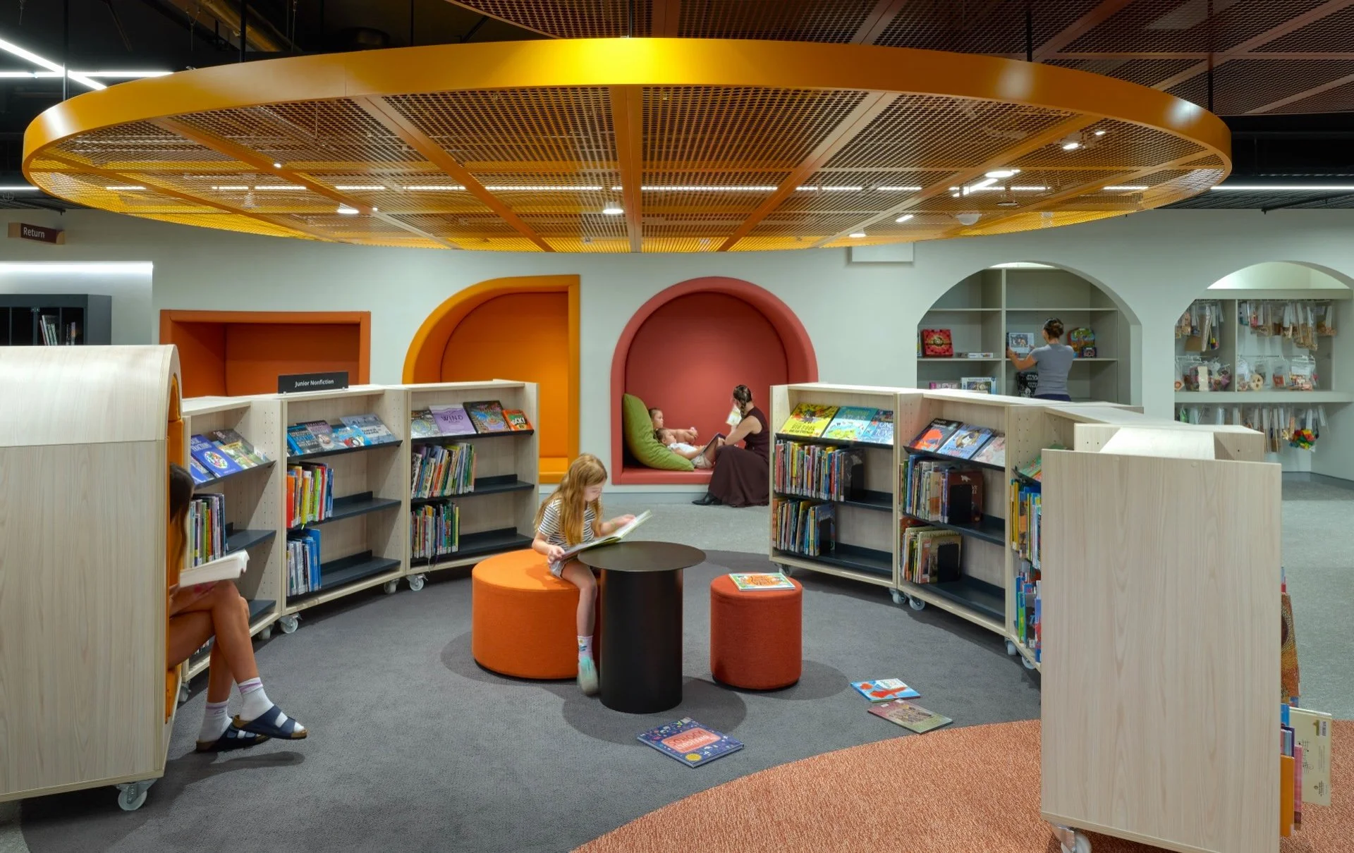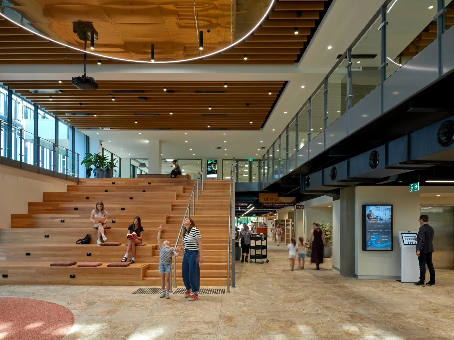 The design elevates the library as a welcoming civic living room, celebrating openness, connection and adaptability. It becomes a place where readers, families, students and visitors can come together in a warm, light-filled environment shaped by landscape and cultural identity.