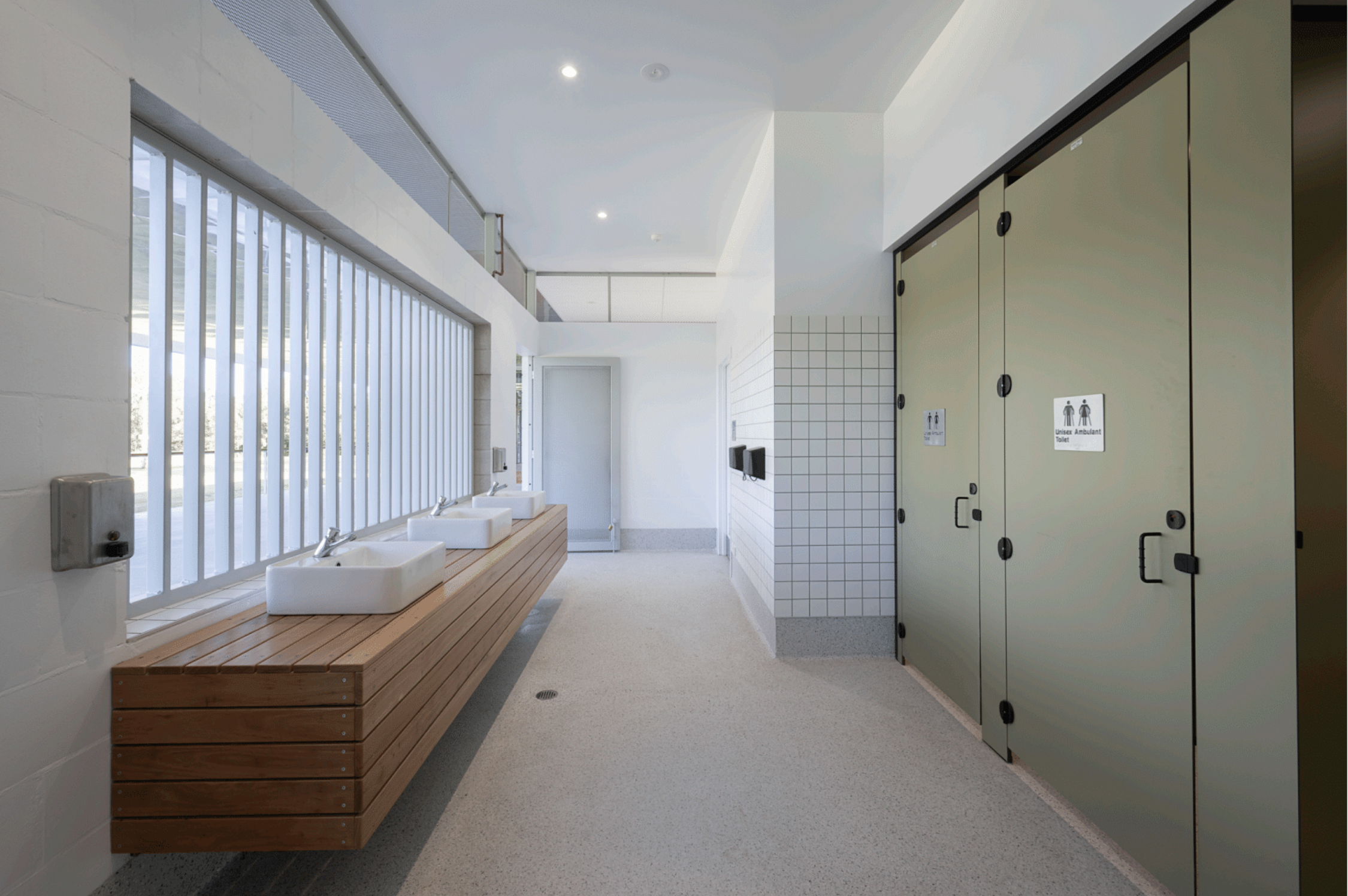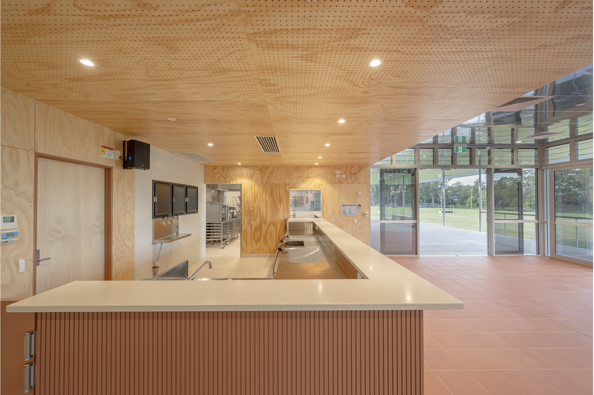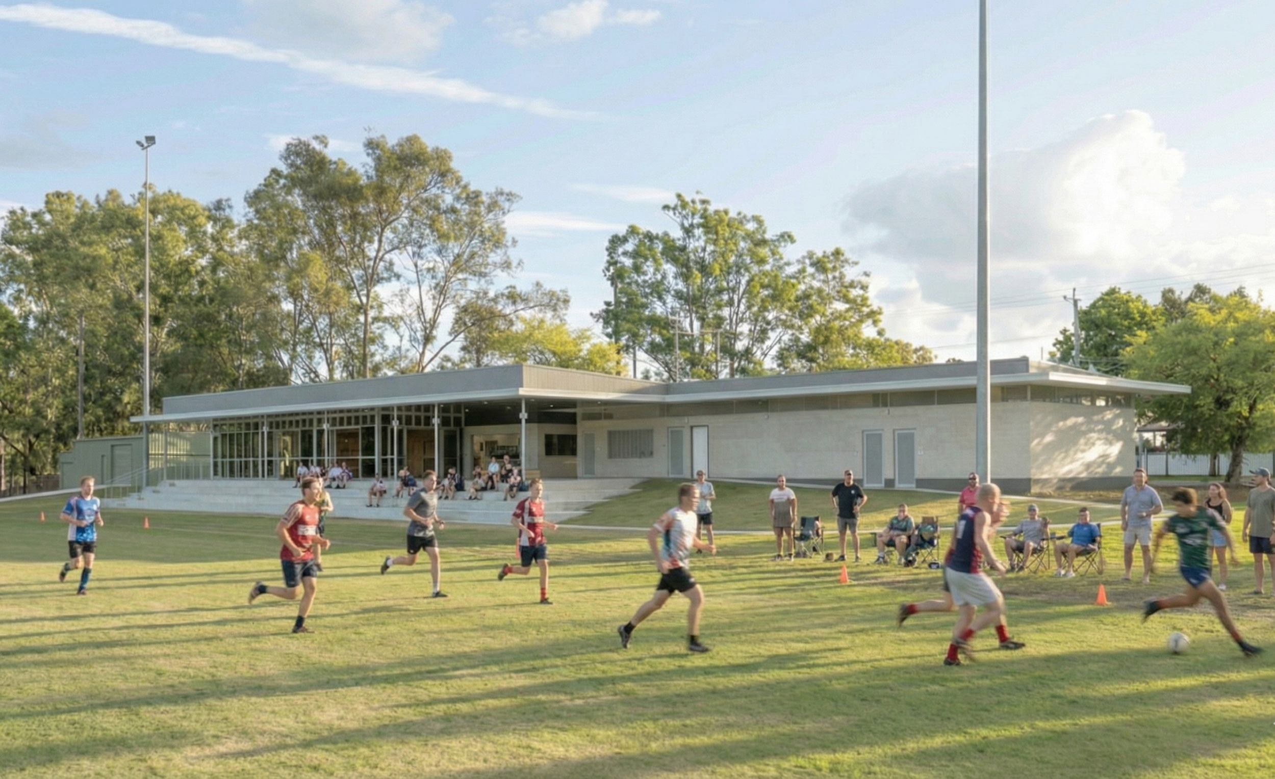 Design intelligence shows in the details. The clubhouse is sited on a natural rise above the defined flood level - a direct response to the 2022 inundation - while flood-prone areas are finished for rapid wash-down and recovery. Grounds storage is housed in an adjacent proprietary steel shed, integrated through landscaping and screening to protect amenity and views, and freeing significant capital in the process.