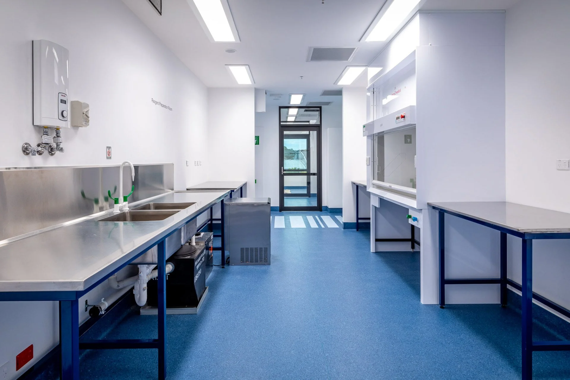 The project involved the fitout and refurbishment of 2,000 m² within an existing commercial tenancy, creating a highly controlled environment that integrates complex laboratory infrastructure with contemporary workplace design.